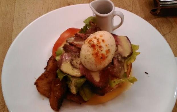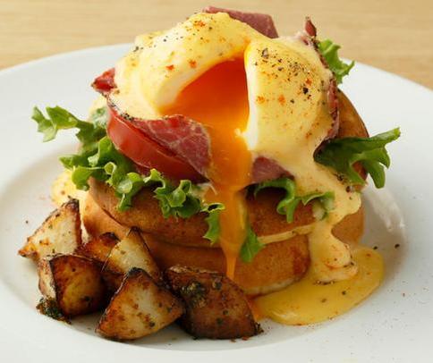パストラミビーフのエッグベネディクトパンケーキ