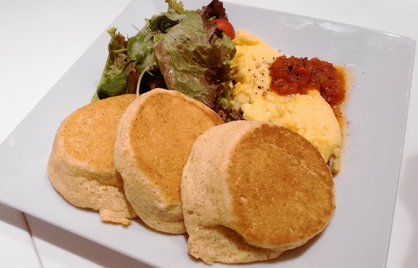 食事パンケーキには全粒粉を使ってるらしく、これまたほんのり甘くて美味でした♪