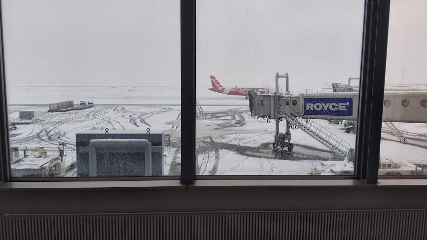 でも、滑走路の除雪が追いつかなくて、滑走路1本で運用してたんで、飛行機は遅れてました。